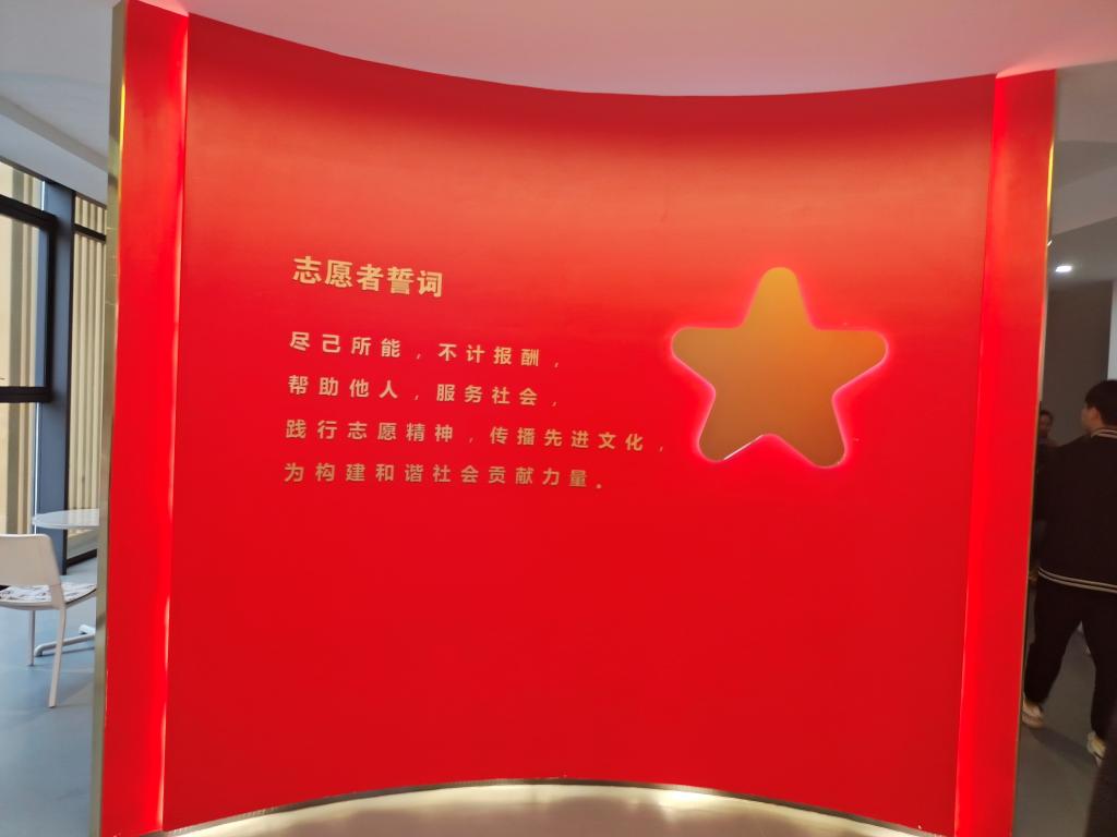 随后,全体师生参观了实践中心,该中心总面积1.2万多平方米,分为两层结构:一层设志愿者服务站、学雷锋工作室、传习中心、初心讲堂等功能区,二层设非遗文化展示、安全警示教育展厅以及群众文化活动等功能区。