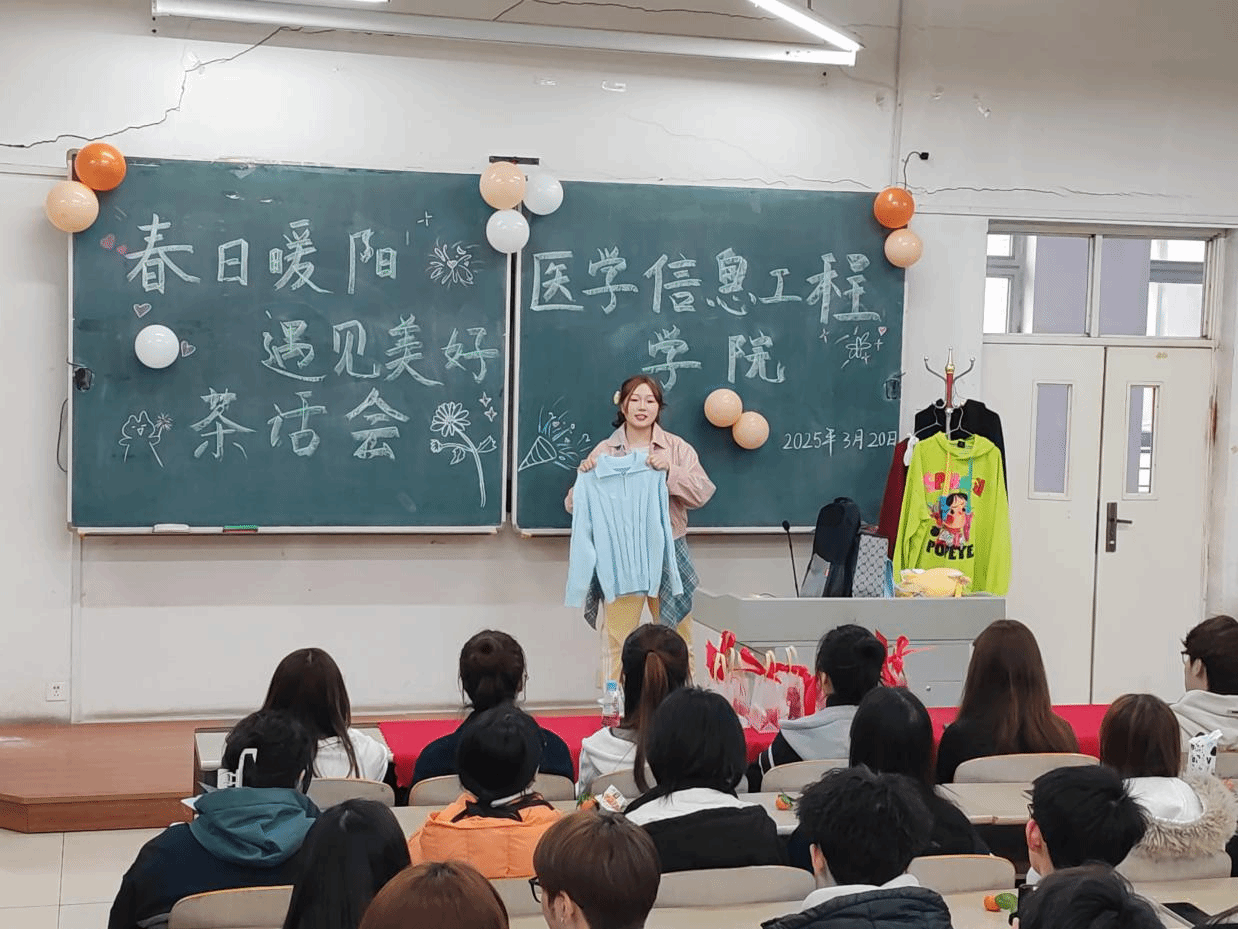 在“日常搭配分享”“化妆技巧教学”等环节,主讲人王鹤钦、董美麟和王昱淇同学结合特定场景,从服饰配色、仪态细节到妆容适配性,逐一解析如何通过外在形象传递自信与专业感,生动诠释了个人形象管理对未来发展的重要意义。