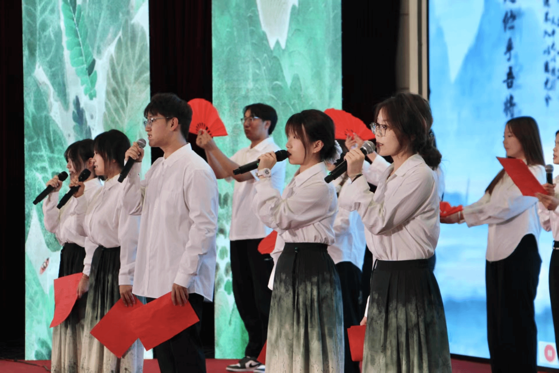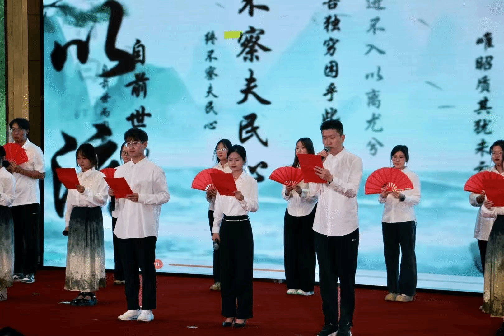 节目的后半段以歌曲《离骚》为核心,将传统诗词朗诵与现代音乐编排巧妙结合。舞台上,员工们身着素雅汉服,以铿锵有力的朗诵,传递出屈原的爱国情怀与求索精神。展现了医信学子的精神风貌,现场观众报以热烈掌声。